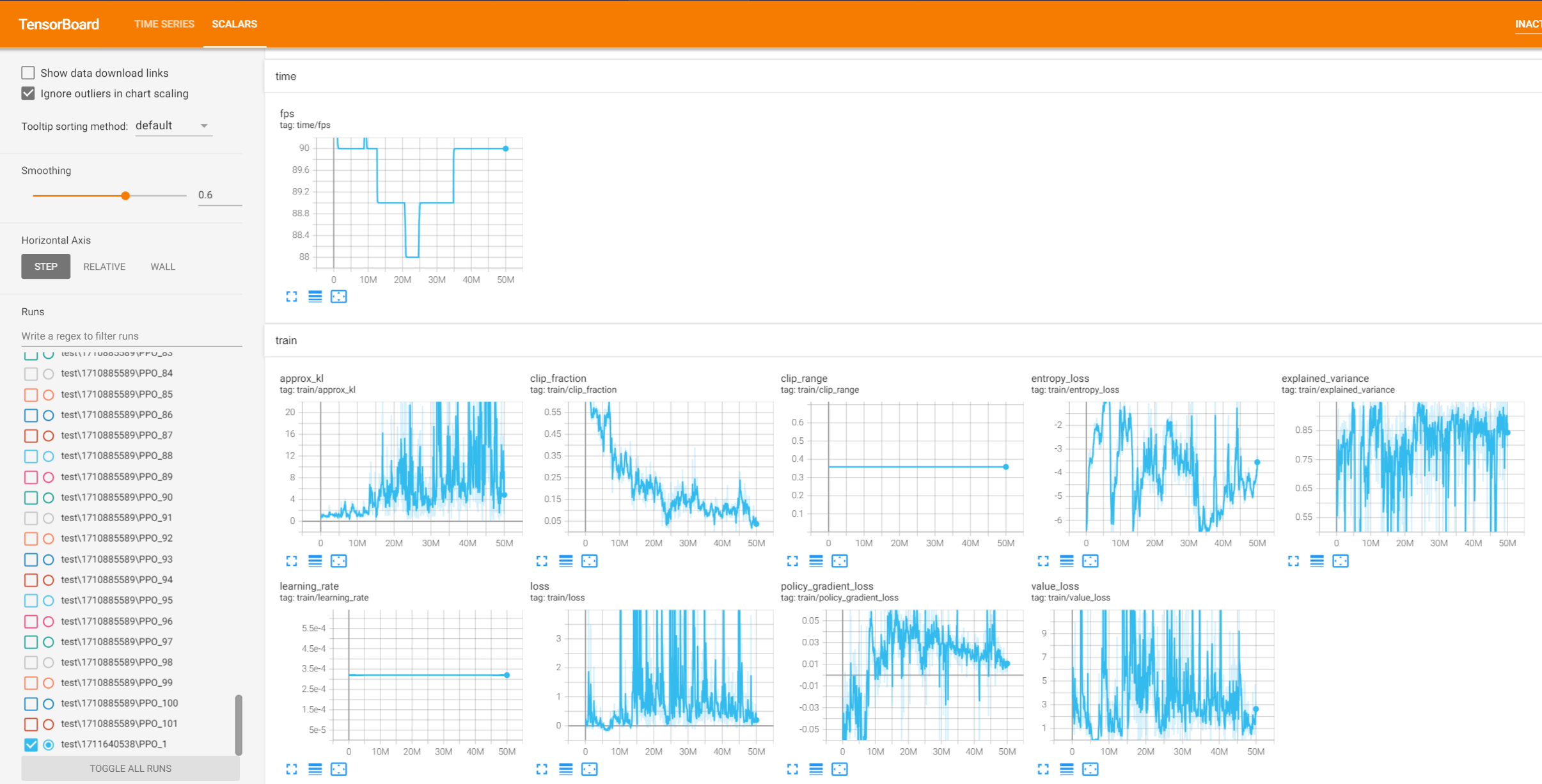 All those PPO models you see on the right of the image in tensorboard are all the different models I trained for this step. (Takes up a ton of space too).